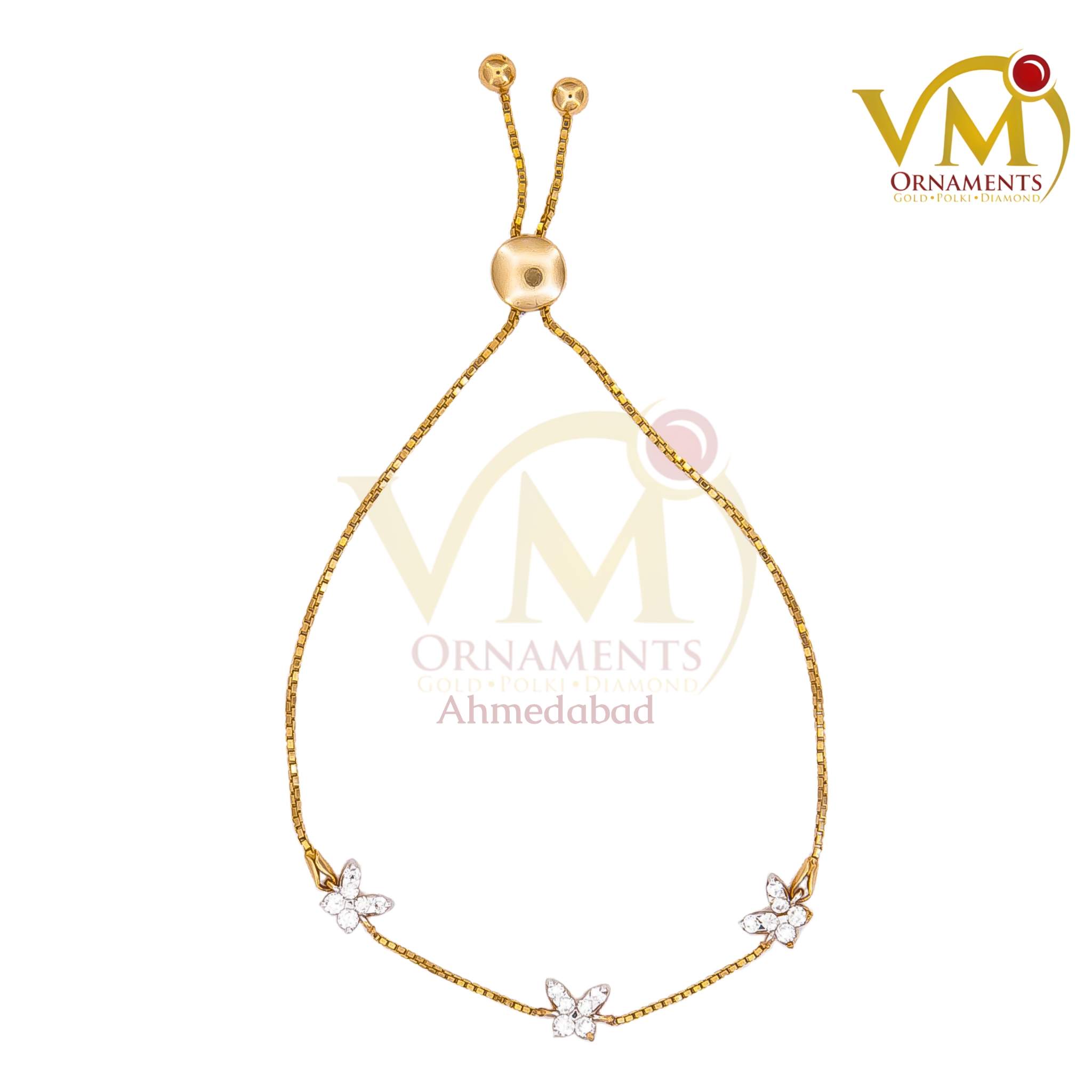 Graceful and enchanting, this 18K Rose Gold bracelet embodies the beauty of nature with a delicate, minimal design. Featuring three dainty butterfly motifs, each accented with sparkling natural diamonds, this bracelet is thoughtfully spaced along a fine chain for a subtle yet captivating look. Lightweight, loose, and size-adjustable, it offers effortless elegance for everyday wear. Perfect for those who love refined sophistication with a touch of whimsy, this bracelet is a timeless addition to any jewelry collection.
