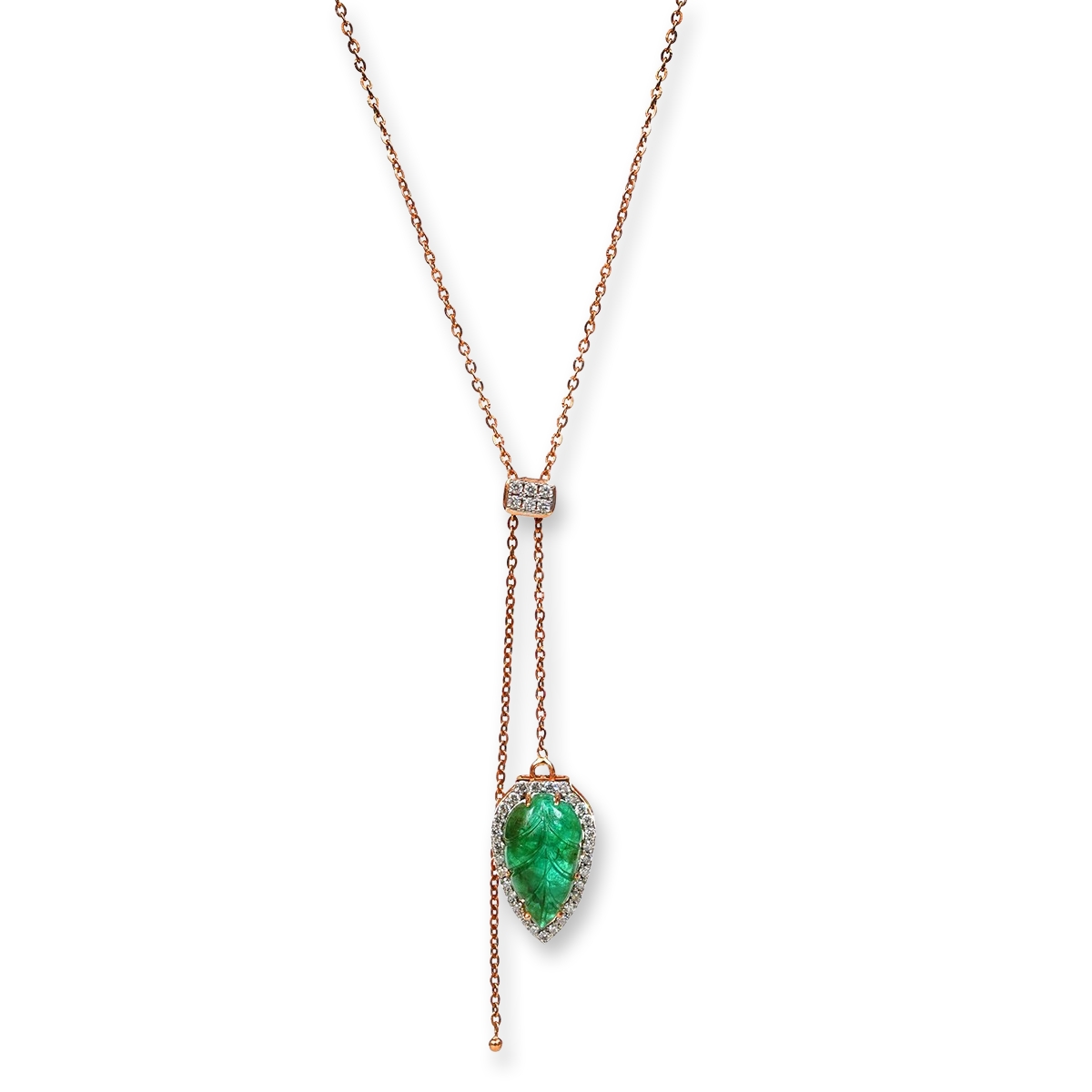 Color Stone type and Color | Leaf Shaped Natural Emerald with intricate carving |