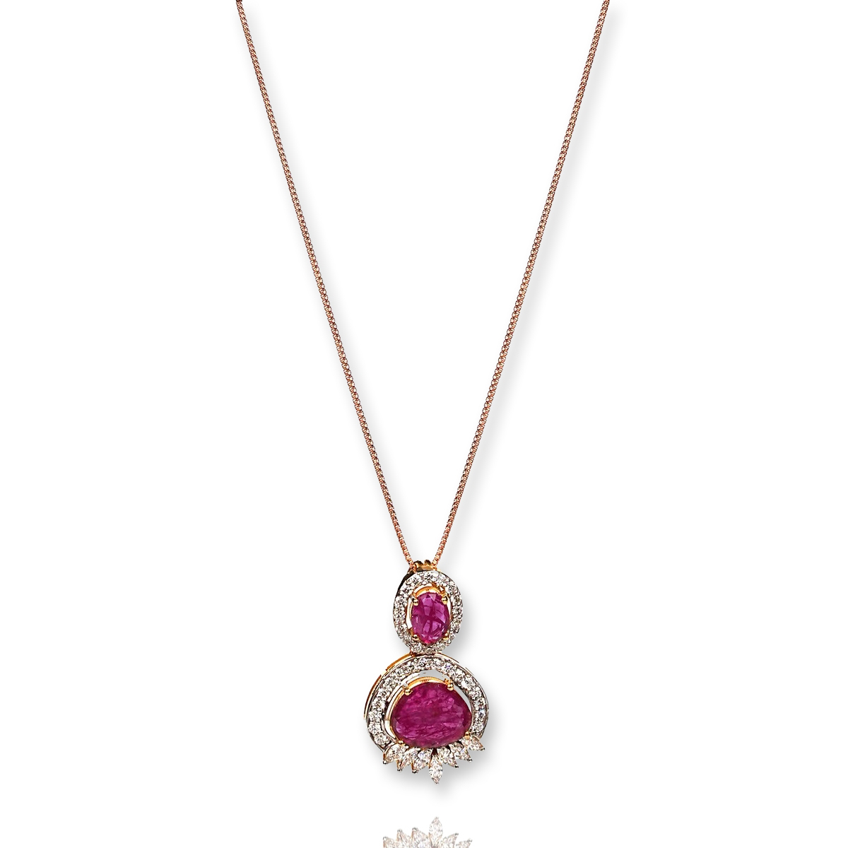Elevate your everyday style with our "Timeless Class" 18K Yellow Gold Pendant-Earrings Set. Modern and minimalist, this ensemble exudes class with natural round brilliant cut diamonds of VVS clarity and EF color. The focal point is the unshaped ruby, boasting impeccable color and clarity. Meticulously crafted, Timeless Class is a testament to sophistication, making it the perfect choice for those seeking enduring elegance in their daily wear jewelry.
