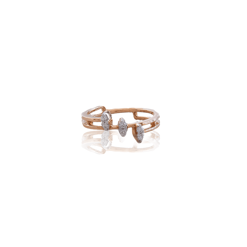 Introducing the Leaf Cascade, an enchanting 18K gold diamond ring inspired by nature's delicate beauty. This exquisite piece features a unique leaf-shaped design, exuding organic elegance. At its center, three dazzling diamonds are meticulously set at varying levels, creating a captivating cascade of brilliance. Crafted with precision and radiance, the Leaf Cascade ring balances grace and sophistication effortlessly. Perfect for nature lovers and style connoisseurs, this ring is a timeless testament to refined taste and natural allure.
