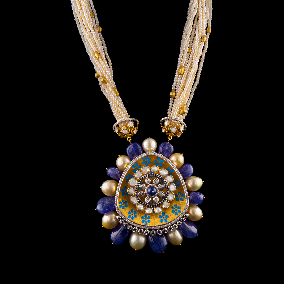- Intricately hand-painted blue meenakari detailing on pendant and earrings